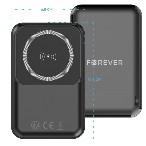 Forever power bank bezprzewodowy MATB-100 PD QC 22.5W 10000 mAh czarny magnetyczny